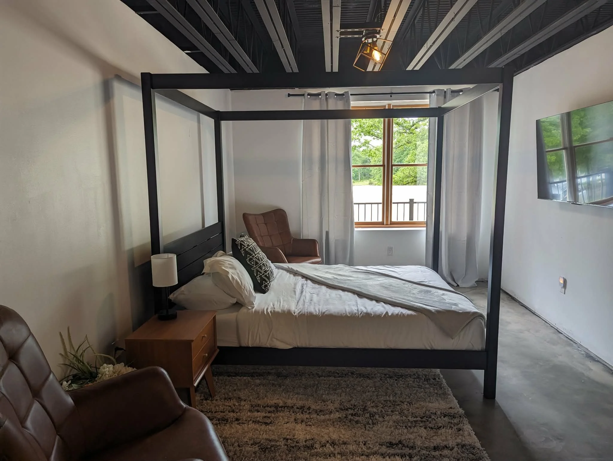 We have four beautifully modern lakeside cabins and a retreat house with a guest suite and meeting space.